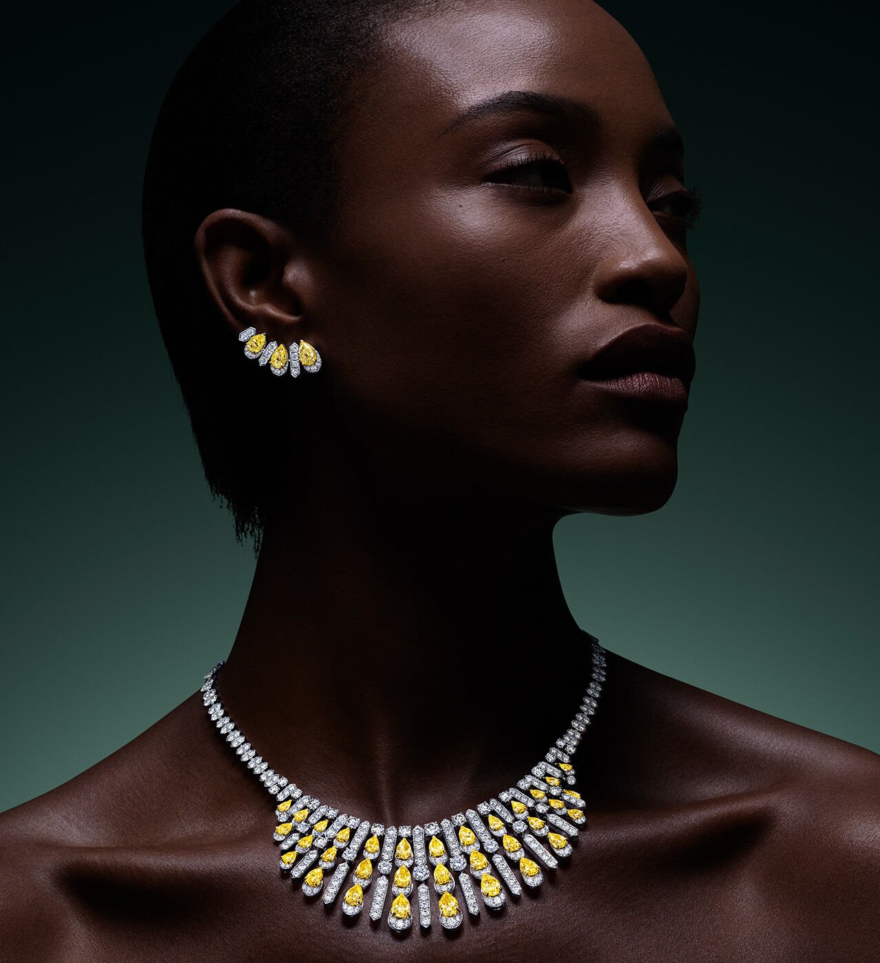 Parallel lines of pear shape diamonds form a perfectly balanced, elegant silhouette. Precise in execution and enduring in character, this creation demonstrates Graff’s mastery of proportion and high jewellery craftsmanship.