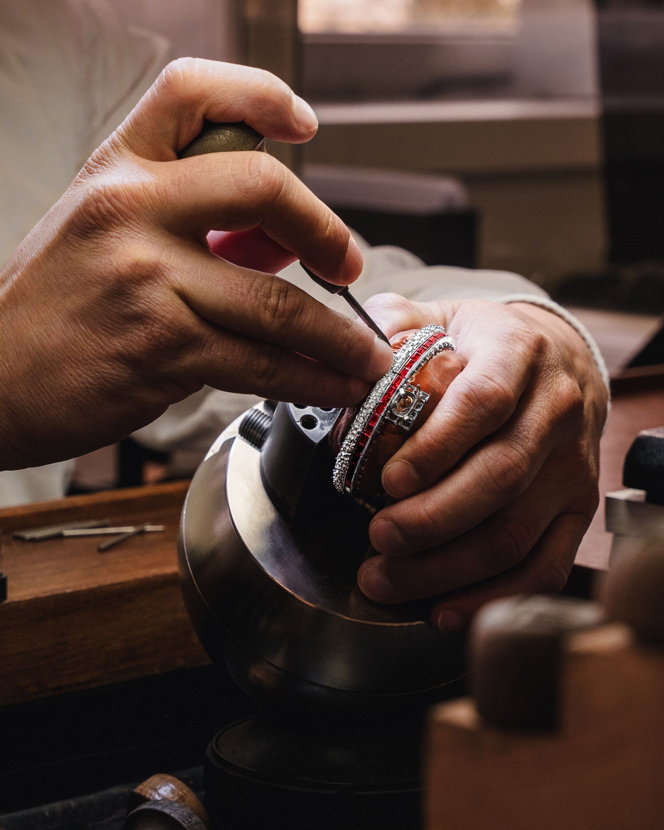 Graff’s master artisans combine time-honoured techniques with cutting-edge technology and flawless expertise to create jewellery pieces of extraordinary precision and beauty. Working in white gold and setting exceptional white diamonds, each creation is meticulously crafted to achieve perfect balance, fluidity and light, allowing the purity of the materials and the brilliance of the stones to be revealed in their most refined and enduring form.